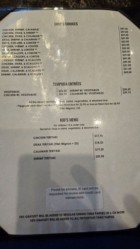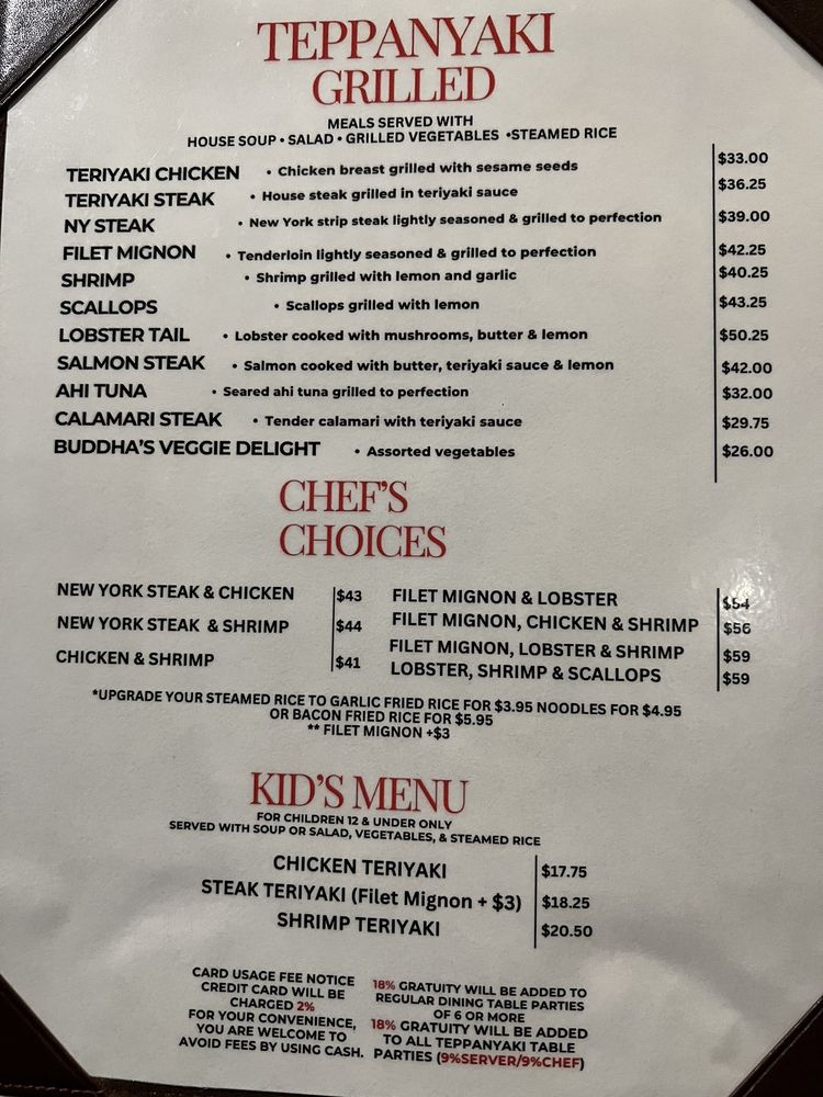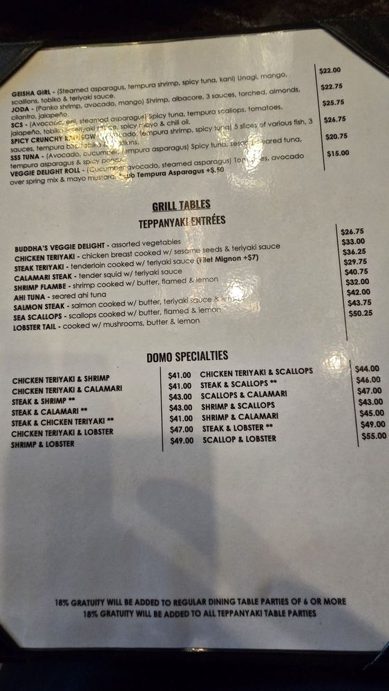 Grill Menu - Domo Teppan Entrées