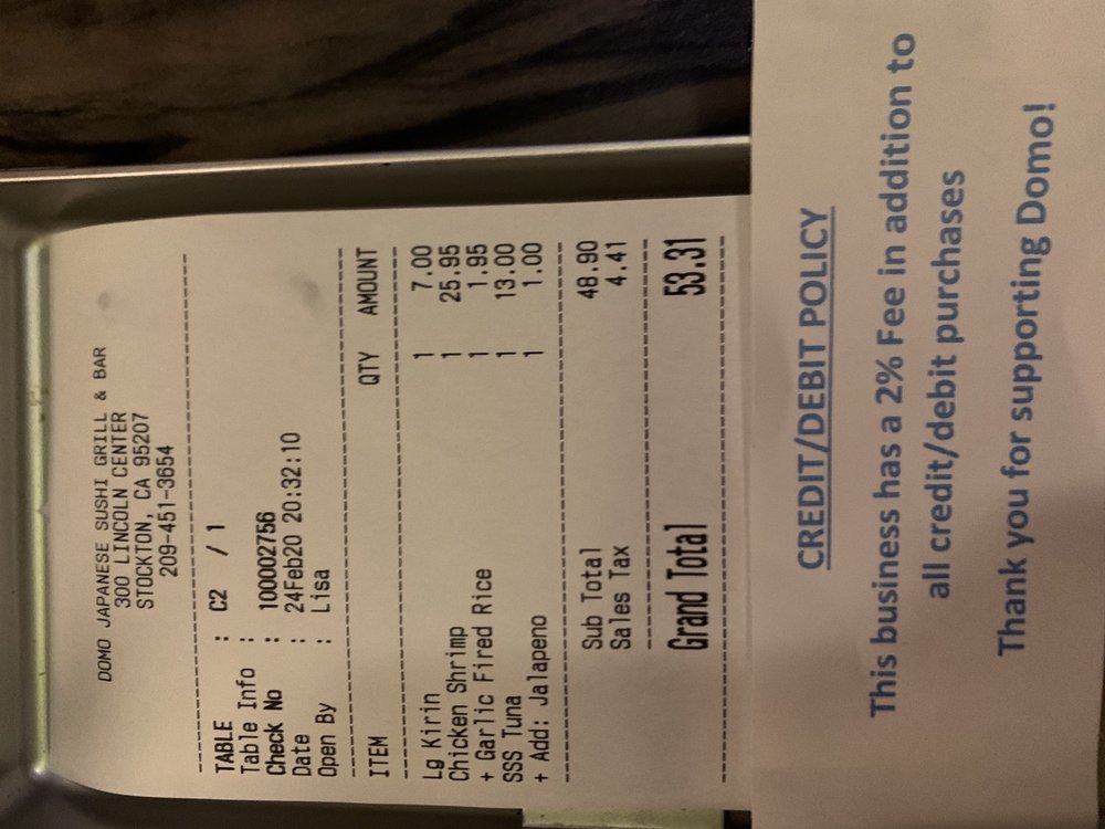 Whether you're here for happy hour with friends or a family dinner, Domo Stockton's welcoming atmosphere and attentive service will ensure a memorable experience. Plus, with conveniences like delivery, takeout, and outdoor seating, enjoying their offerings has never been easier!