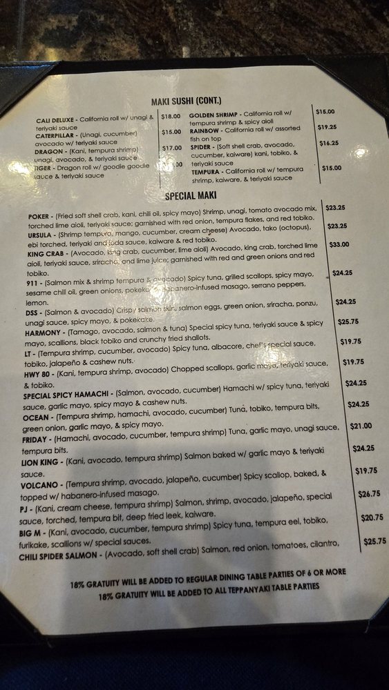 Sushi Menu - Special Maki